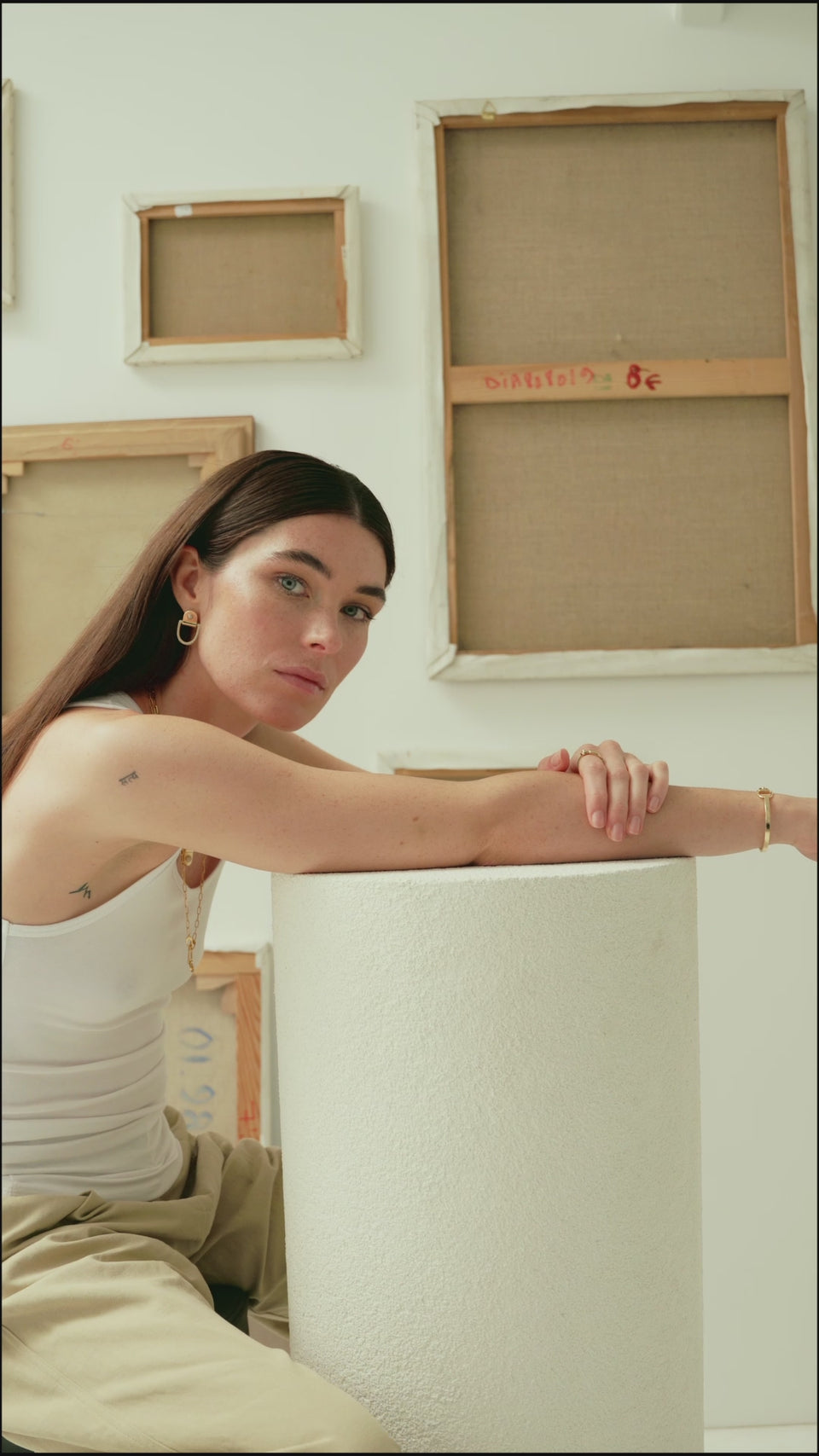 Pour Amélie, fondatrice de la Maison STATEMENT Paris, la collection Rivet est plus qu’un exercice de style : c’est une déclaration d’attachement. En observant les anneaux d’ancrage invisibles au dos des tableaux, elle y a vu un symbole des personnes qui nous maintiennent : ces points d’attache discrets, souvent invisibles, mais essentiels pour maintenir et structurer l’œuvre, sont devenus l’inspiration des bijoux.