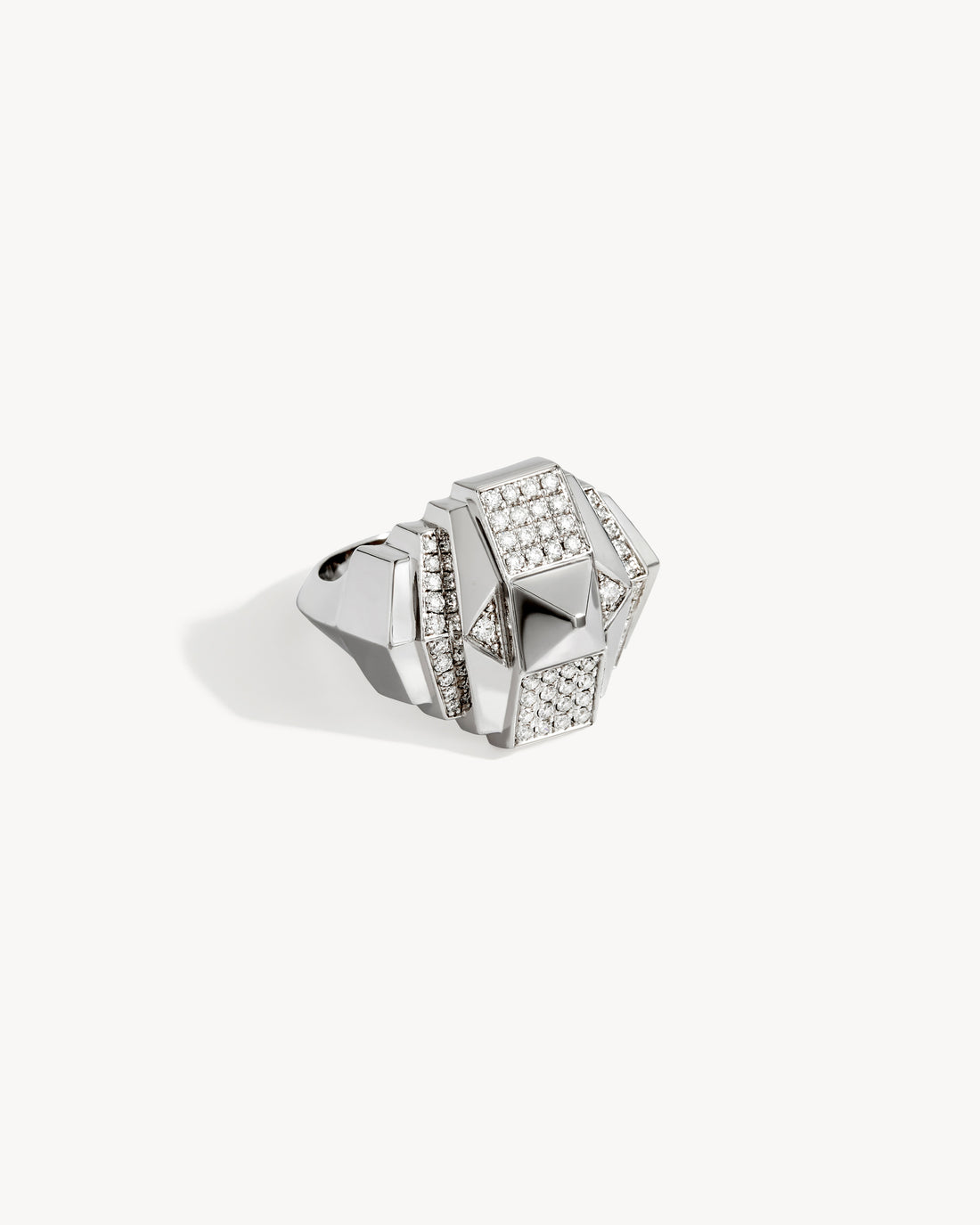 Rockaway Pyramid Half Paved Ring Silver & Diamonds