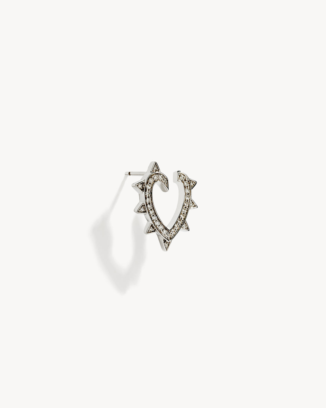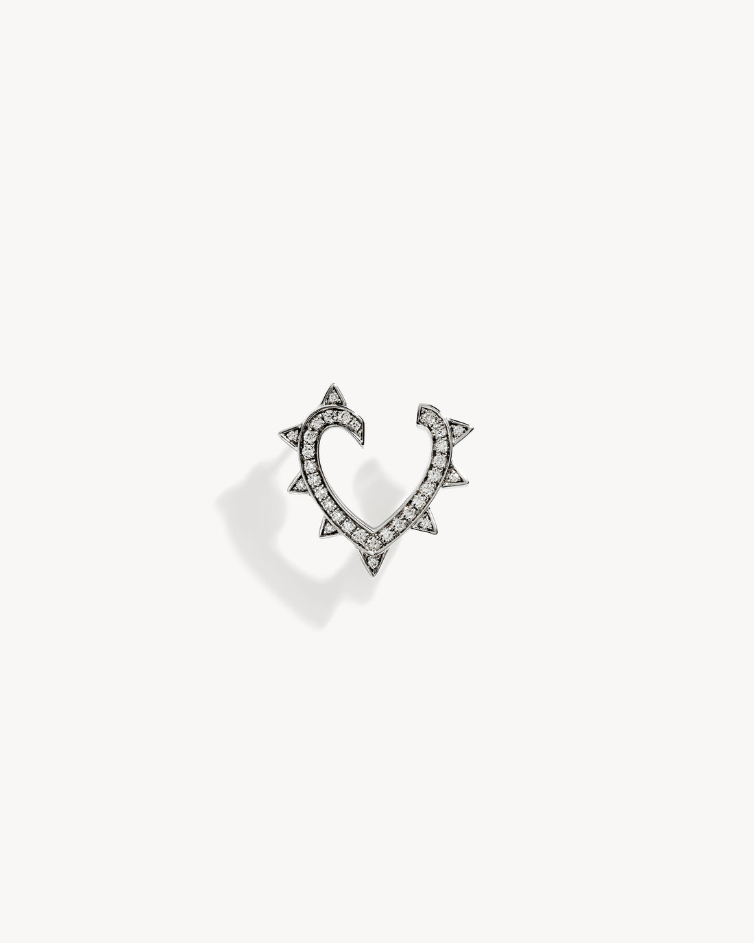 The very first heart of the Maison embraces the design codes of the Rockaway collection. Crafted in silver, the heart-shaped earring is adorned with studs which, combined with diamonds, create an elegant play of light and shadow in perfect duality.