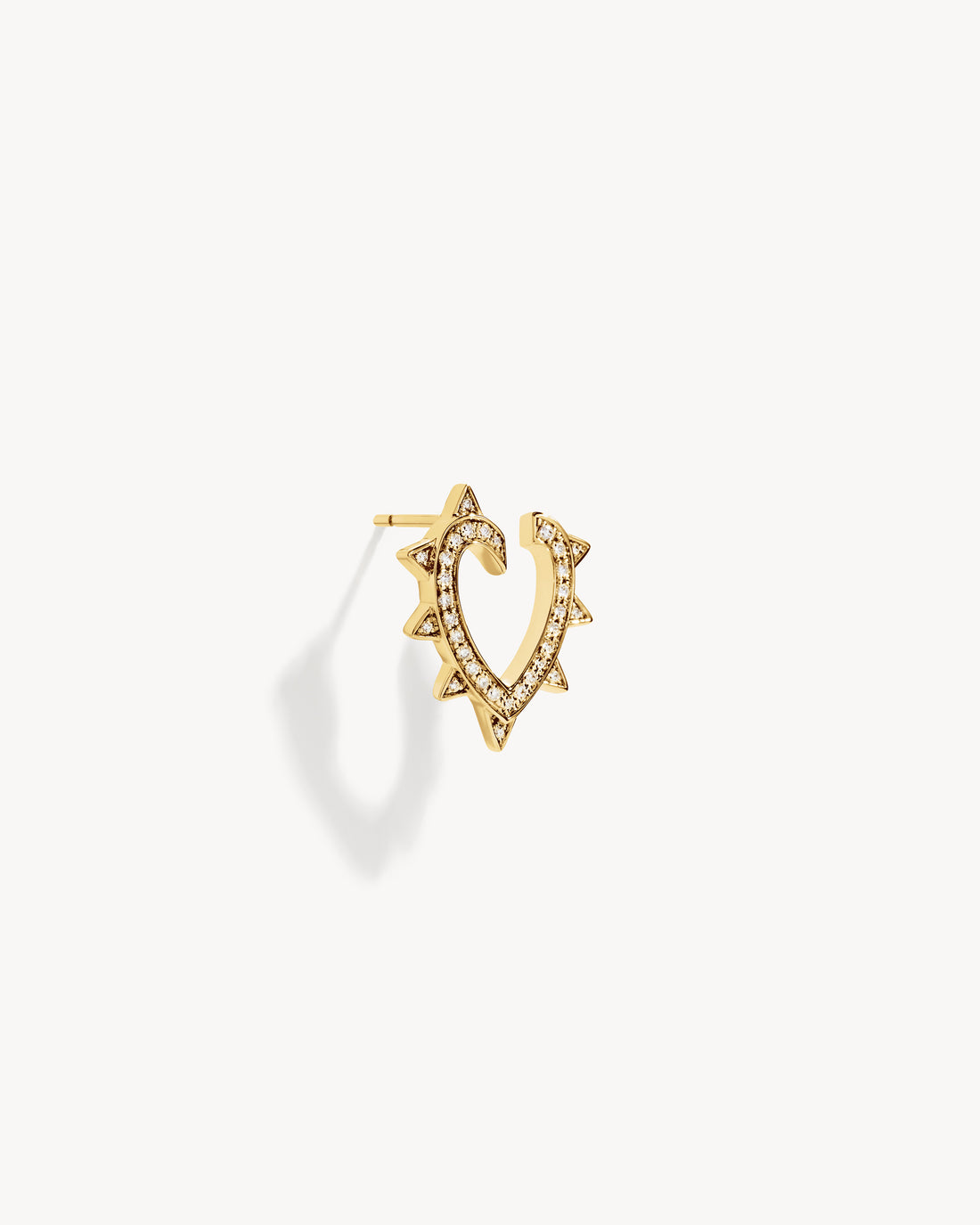 The very first heart of the Maison echoes the design codes of the Rockaway collection. Crafted in yellow gold, the heart earring is adorned with studs which, combined with diamonds, create an elegant play of light and shadow in perfect duality.