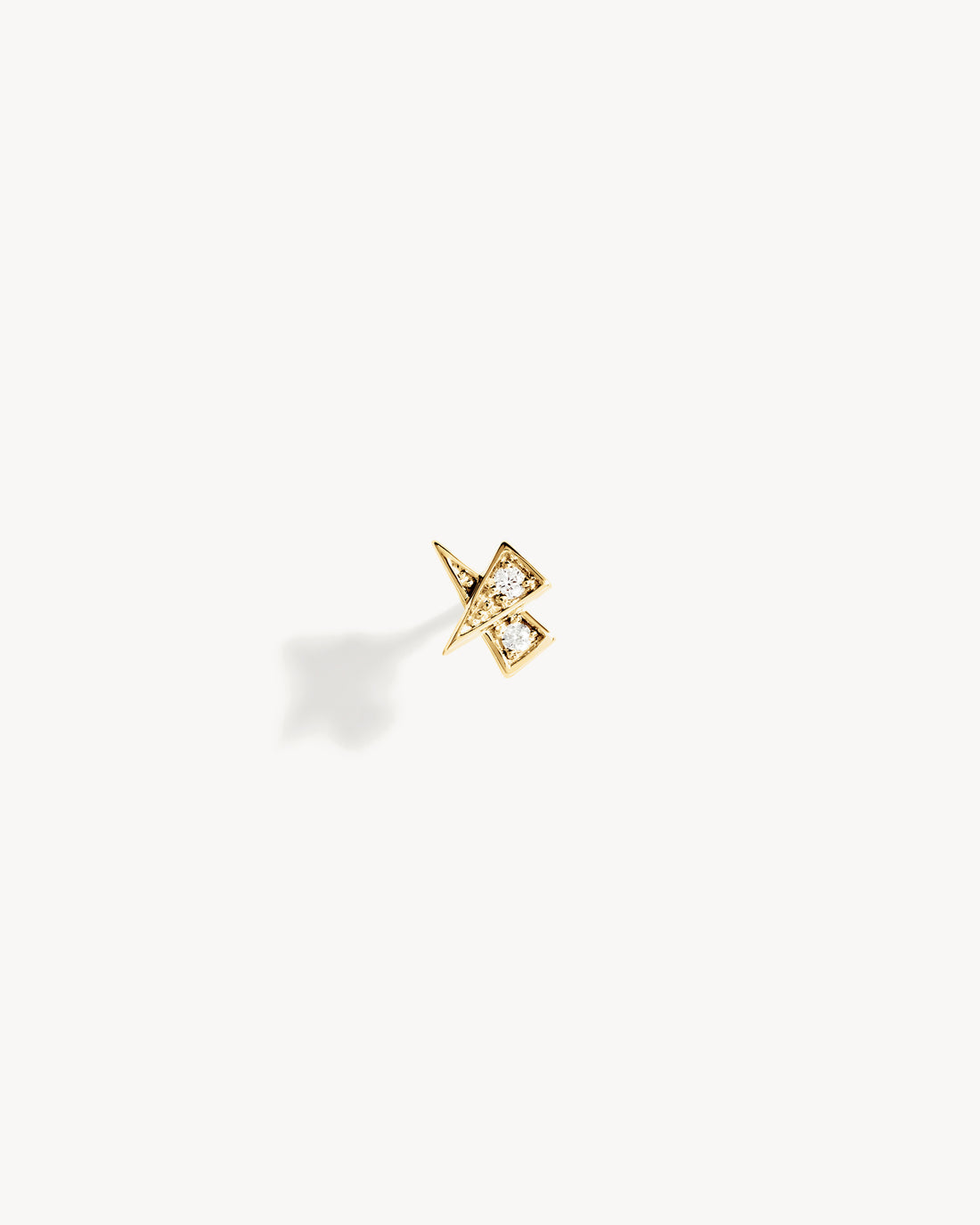 Crafted in 18-carat yellow gold and set with two diamonds, this earring features two intersecting triangles. A universal geometric shape, the triangle is a symbol of balance.