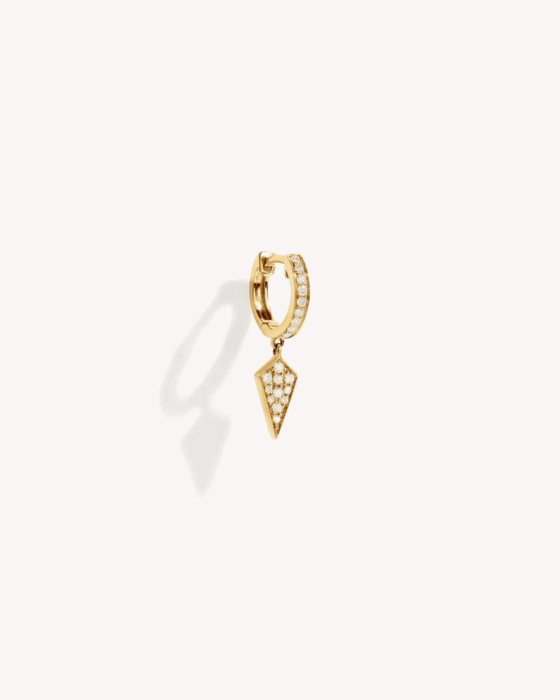 This point-shaped Stairway hoop earring in 18-carat yellow gold is studded with 21 natural diamonds.