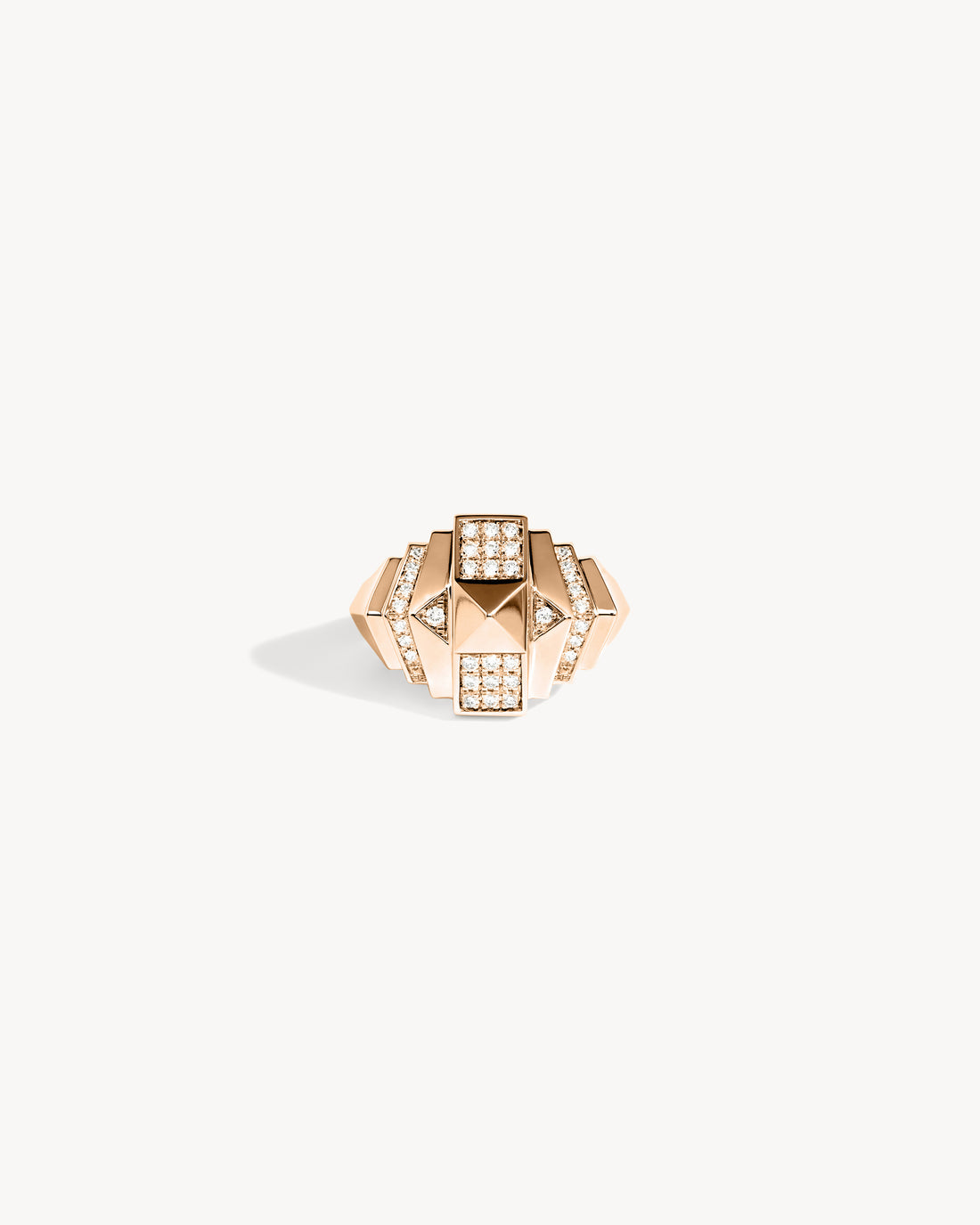 Bague Rockaway Mini Pyramide Semi Pavée Or Rose & Diamants