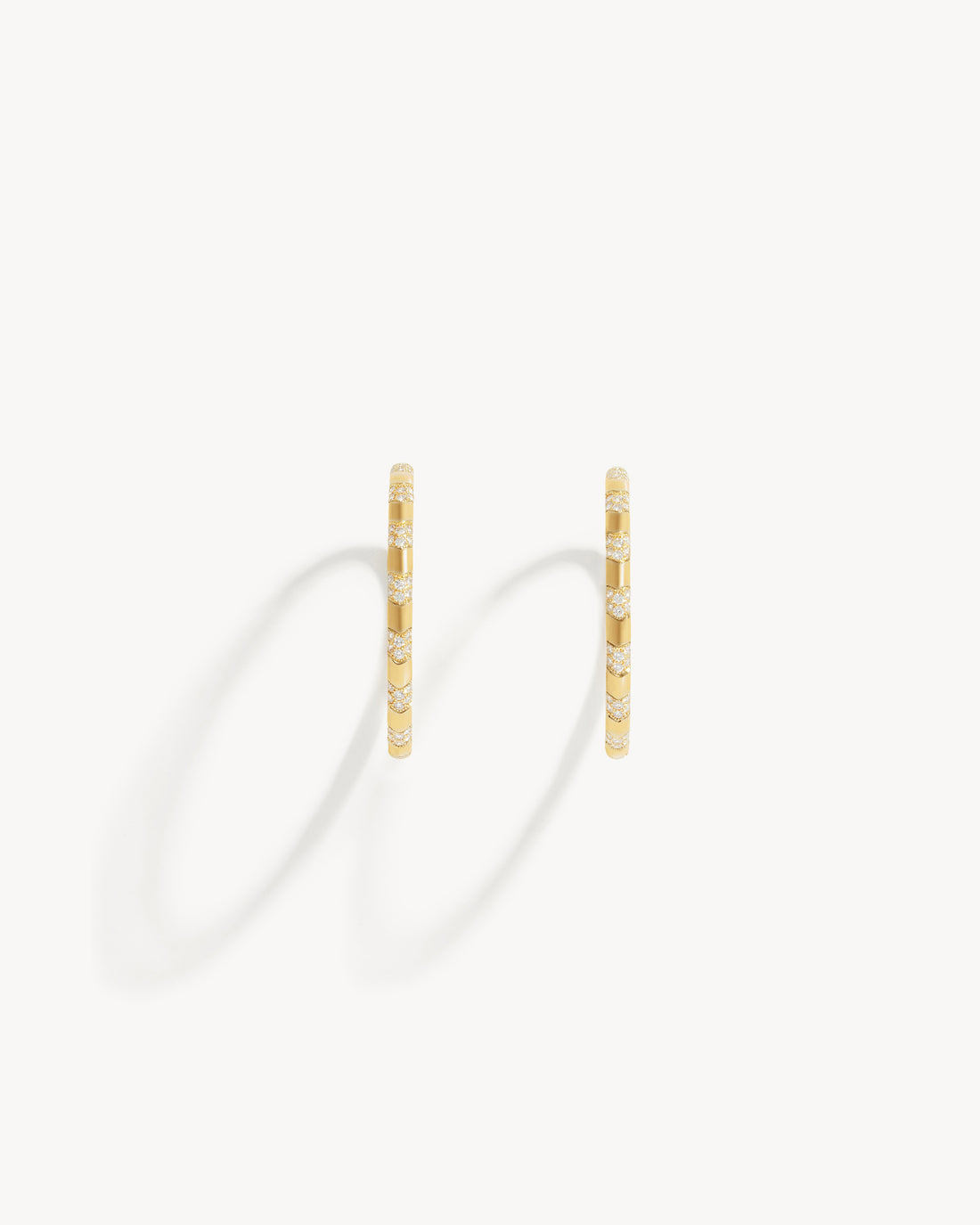 Les créoles Reptile s’inscrivent dans l’esthétique envoûtante de l’écaille du serpent, mise en valeur par l’utilisation de diamants et d’une maille flexible en or 18 carats.