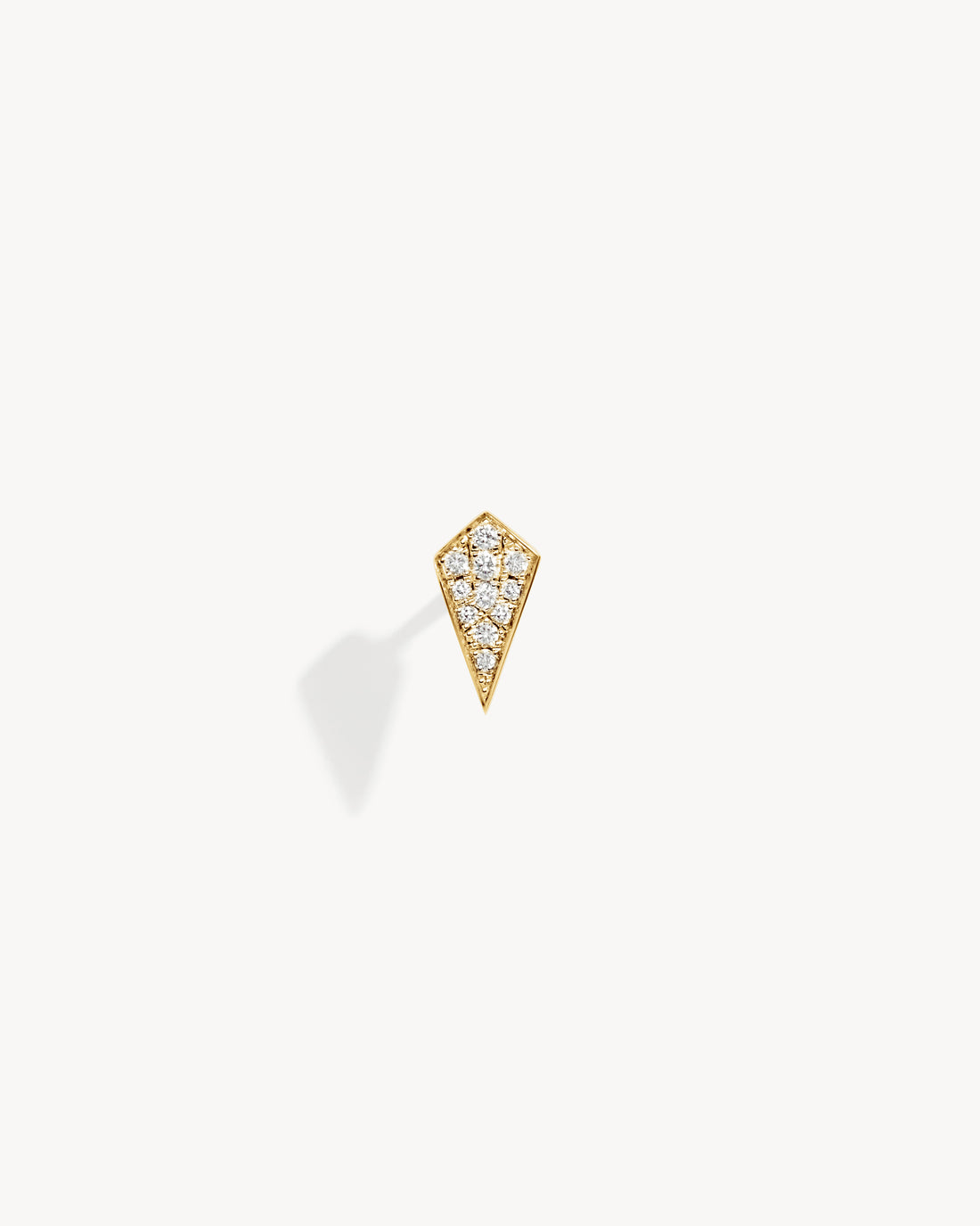 Cette puce d'oreille Stairway en forme de pointe en or jaune 18 carats est parcourue de 11 diamants naturels.